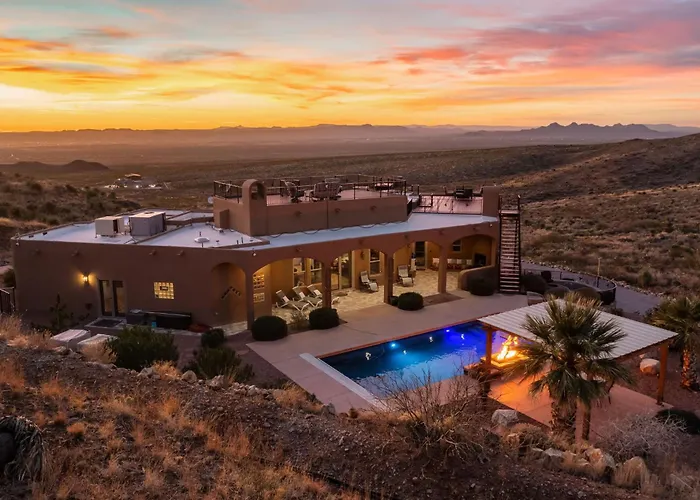 Situated 2.6 km from Soledad Canyon Day Use Area, Secluded Retreat Pool Spa Sauna Rooftop Deck Las Cruces villa features a patio with views of the mountain.